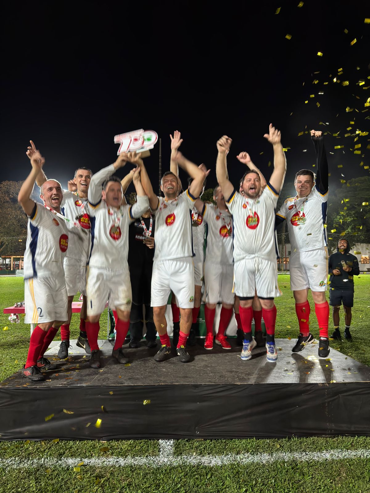Na primeira partida da noite pela categoria máster, a equipe do JJ Serviços Elétricos do João Jacob, saiu na frente do placar com o jogador Jakson, mais o time da Workshop do Luciano foi para cima, empatou, virou a partida e venceu pelo placar de 4 a 2, sagrando-se campeão da categoria. Os gols da Workshop foram anotados por Daniel Réus duas vezes, Garaba e João Carlos, já os gols do JJ Serviços foram anotados por Jakson e Ricardo Ghelere. Ao final da partida foram entregues as premiações aos vencedores. O artilheiro da categoria foi Garaba da Workshop com 16 gols, o goleiro menos vazado foi Guilherme Hoffmaister e o craque da final foi Daniel Réus da Workshop.