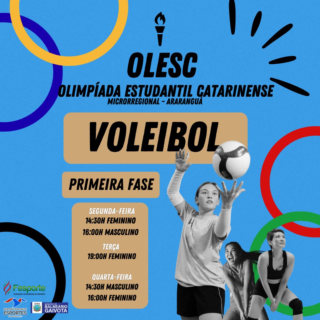 A etapa microrregional da Olimpíada Estudantil Catarinense (OLESC) será disputada com sede em Araranguá, e Balneário Gaivota estará representada nas modalidades de futsal e voleibol, nos naipes masculino e feminino.