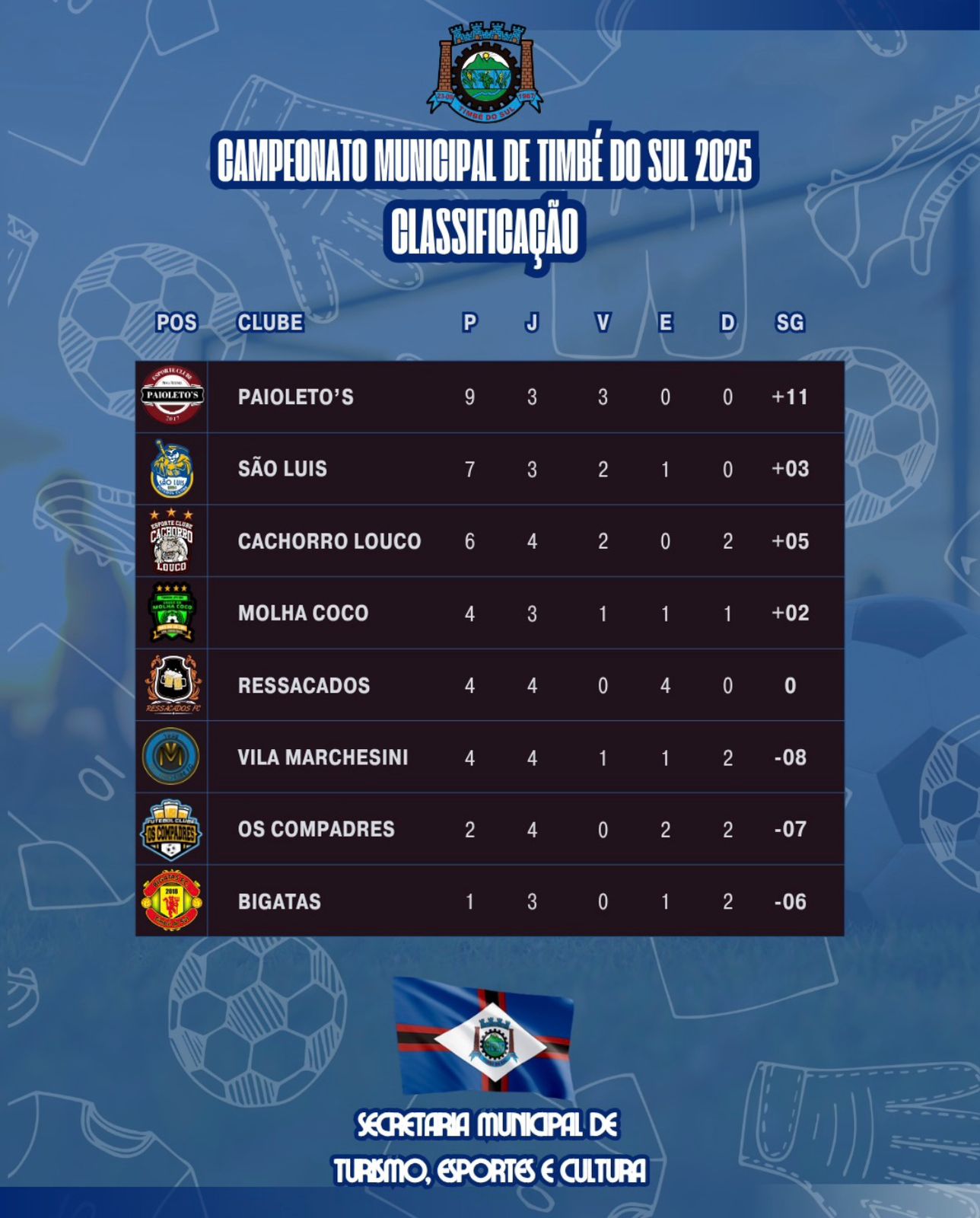 O Campeonato Municipal de Futebol é uma realização da Prefeitura Municipal e Secretaria Municipal de Turismo, Esporte e Cultura. Neste ano, os times buscam a Taça Nailor Biava.