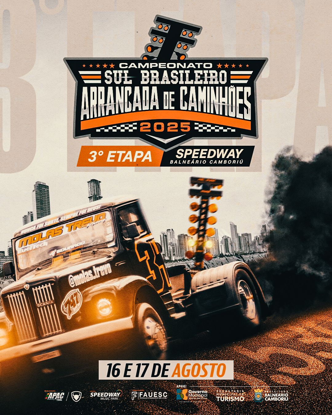 Nos dias 16 e 17 de agosto de 2025, o Speedway Music Park, em Balneário Camboriú, será palco da terceira edição do Campeonato Sul-Brasileiro de Arrancada de Caminhões, competição que já se consolidou como um grande evento do gênero.