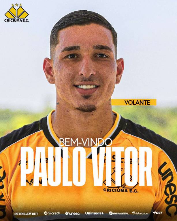 O Criciúma oficializou nesta terça-feira (11/02) a chegada do volante Paulo Vitor. O atleta, que vem de empréstimo do Atlético Mineiro, fica no Tigre até o final desta temporada. Ele já está no Centro de Treinamento Antenor Angeloni com o elenco carvoeiro em preparação para as competições deste ano.