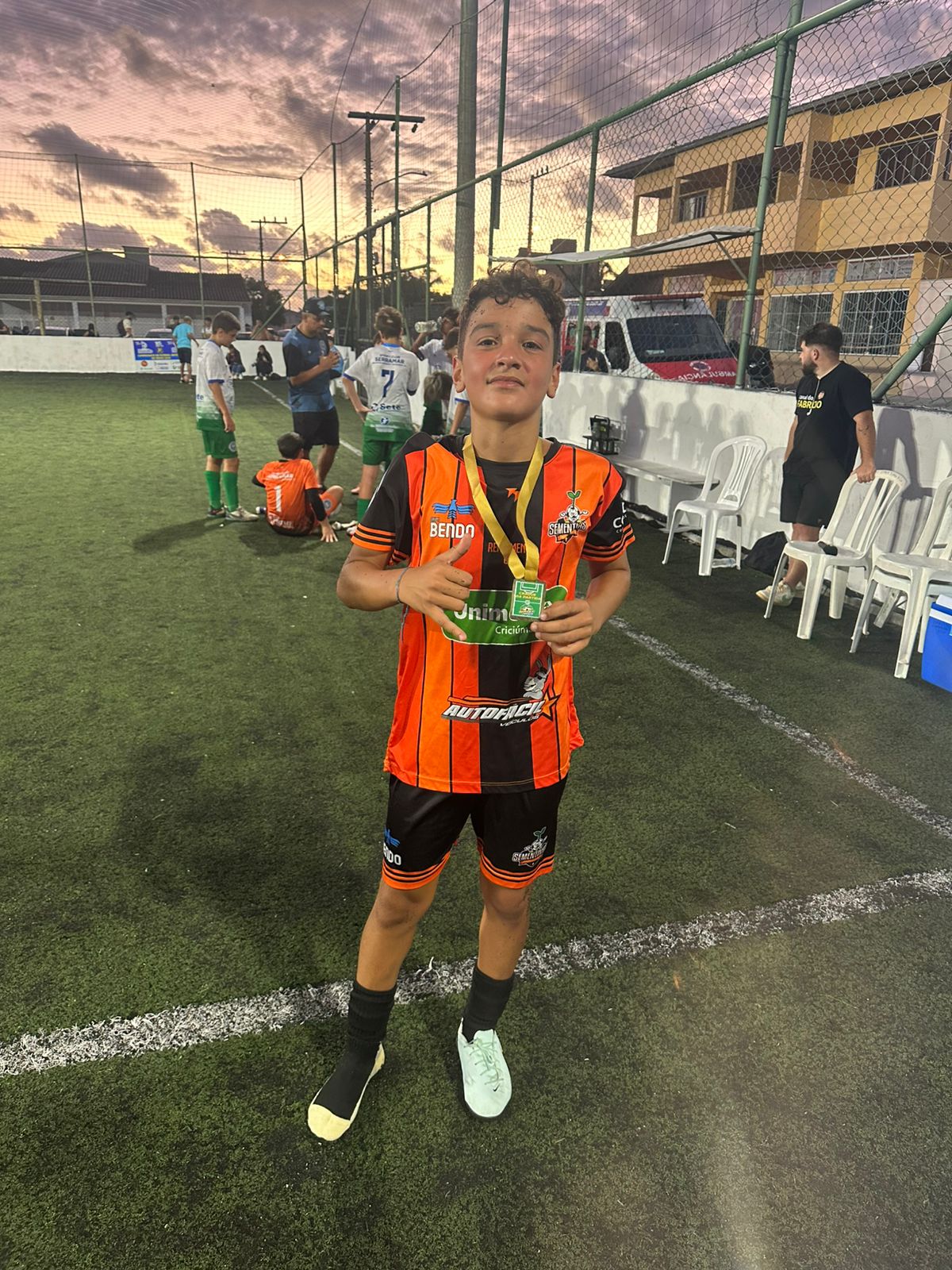 Na segunda partida da noite, pela categoria sub 14, a equipe do Projeto Sementinhas/Laranja ganhou da Academia Bertoncini/Serramar Branco por 3 a 0, com gols de Miguel Cararo Novaski, Luís Otávio Dal Forno e Gabriel Pacheco Luiz. O destaque craque do jogo foi o Gabriel Pacheco Luiz do Sementinhas. Com a vitória o Sementinhas soma seis pontos e é o líder do grupo.