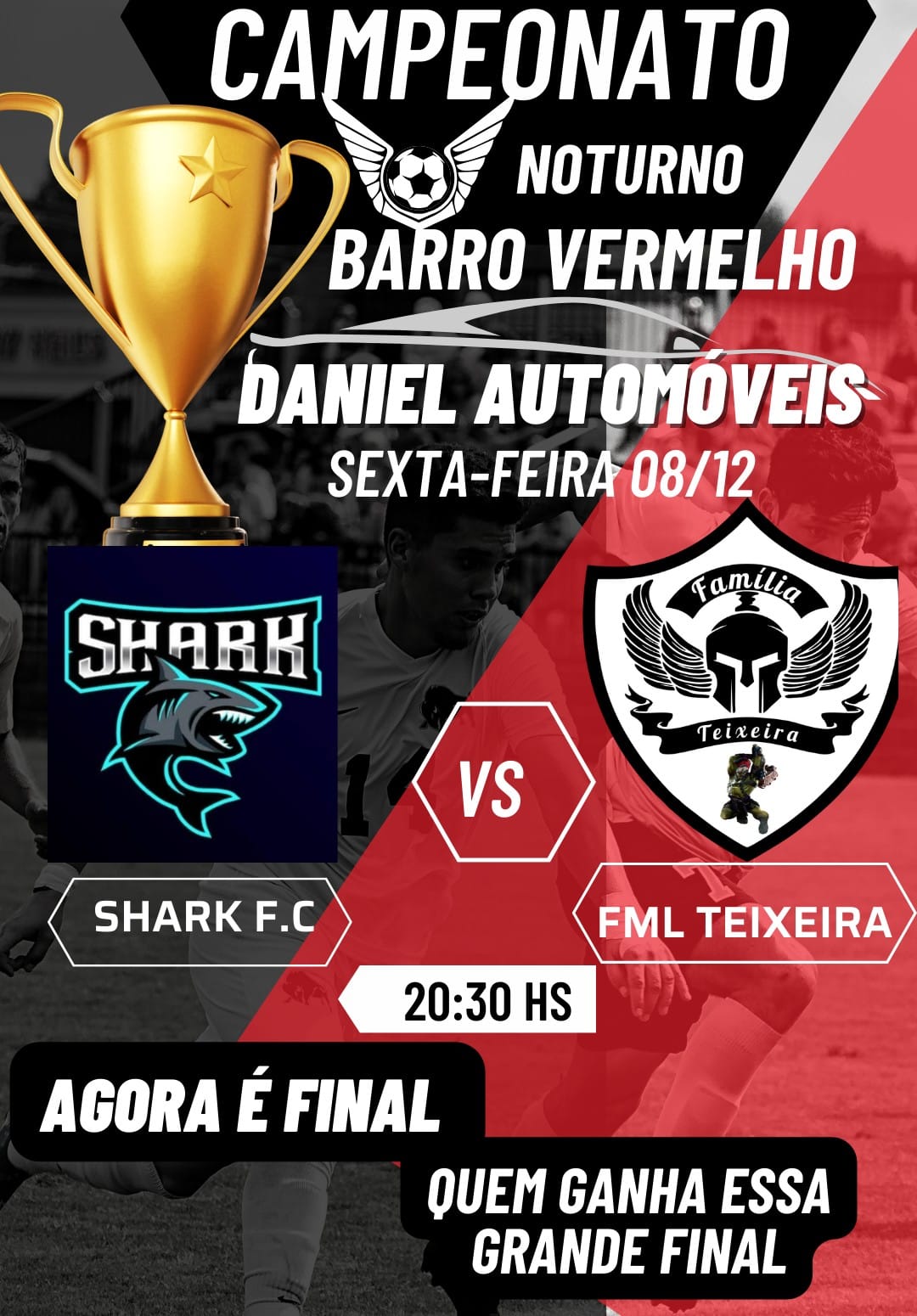 A bola vai rolar pela decisão do campeonato noturno do Barro Vermelho. A grande final entre Família Teixeira de Araranguá, e o Shark de Criciúma, acontece hoje, sexta feira (08), no centro esportivo Família Souza. Em jogo a Taça Daniel Automóveis e a Copa Casa do Pintor.