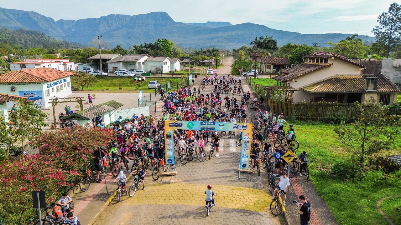 A concentração iniciou às 8h, com café da manhã para os participantes, e a largada aconteceu às 8h15. O evento contou com dois trajetos: o percurso família, com 8 km, e o percurso sport, de 26 km.