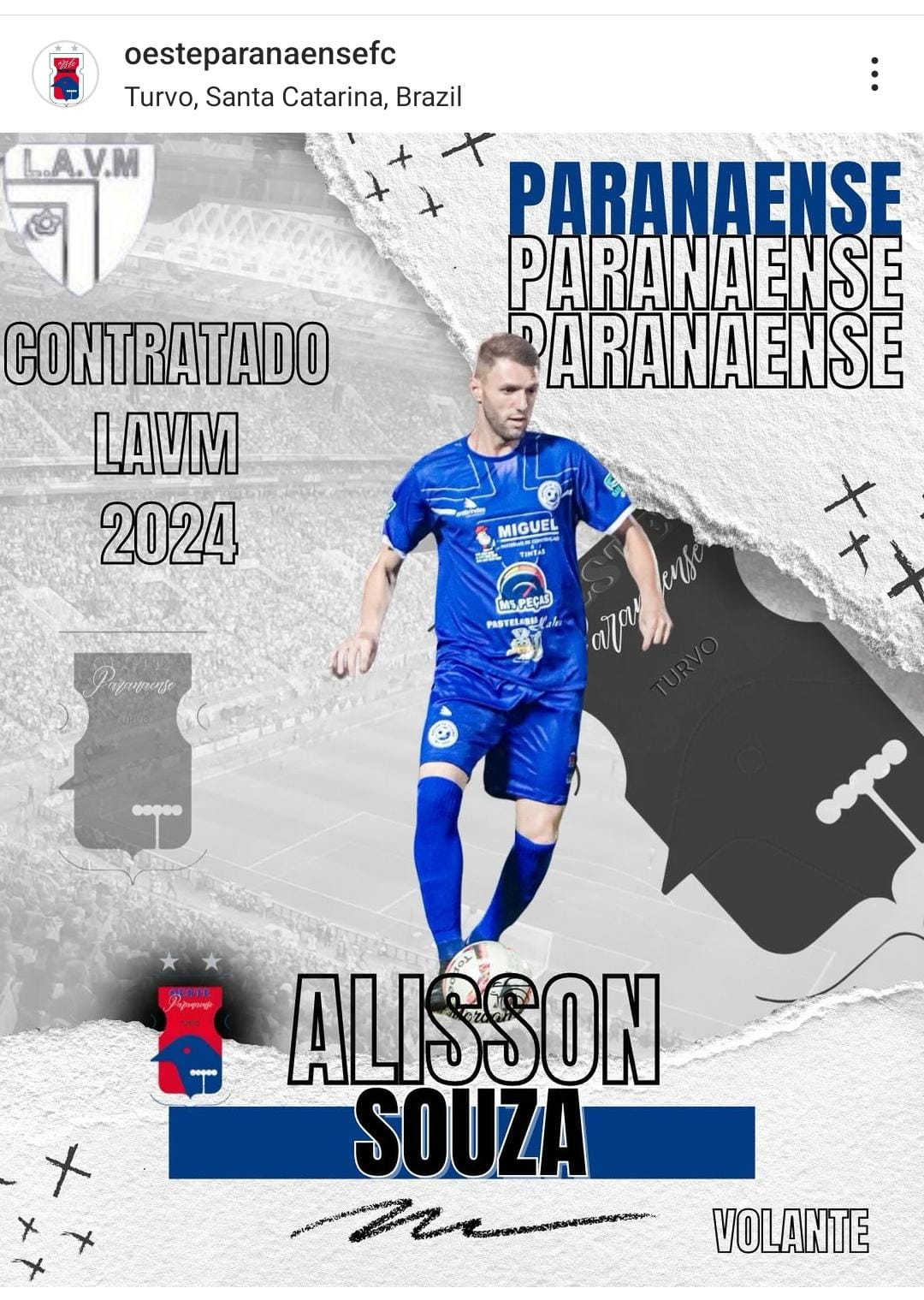 A equipe do Paranaense de Turvo, vem se reestruturando e vem contratando atletas para o regional da LAVM 2024. A equipe comandada pelo Kanidia, apresentou a sua mais nova contratação, trata-se do volante Alisson, jogador da cidade de Maracajá, com passagens por vários times da região, e que vem se destacando no meio de campo, sempre com seu vigor físico, de muita marcação e movimentação.