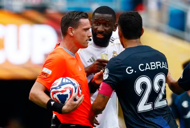 Houve um tumulto entre os jogadores nos acréscimos do segundo tempo. Em lance de bola aérea perto do gol do Pachuca, o zagueiro argentino Gustavo Cabral atingiu uma braçada no rosto de Rüdiger. Por alguns instantes, o jogador do Real Madrid ficou caído.