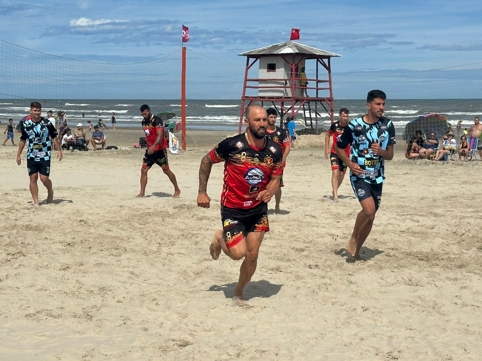 Apesar do forte vento a beira mar no último domingo (10), a bola rolou para mais uma rodada do campeonato praiano da Praia da Caçamba 2026. Foram dois jogos pela manha pela categoria veteranos taça Volnei Teixeira Emídio e patrocínio oficial da Bex Construções e quatro jogos a tarde pela categoria livre taça Mestre da Obra e Copa Casa do Pintor.
