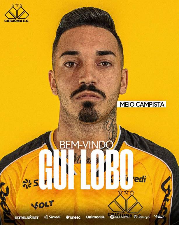 O Criciúma confirmou nesta quarta-feira (19/03) a contratação do meio campista Gui Lobo. Com contrato de duas temporadas, o atleta já está no Centro de Treinamento Antenor Angeloni com o elenco do Tigre em preparação para a Série B do Campeonato Brasileiro e terceira fase da Copa do Brasil.