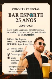 Bar Esporte comemora 25 anos neste sábado com musica ao vivo e costelaço Cleder Maciel 17 de julho de 2025